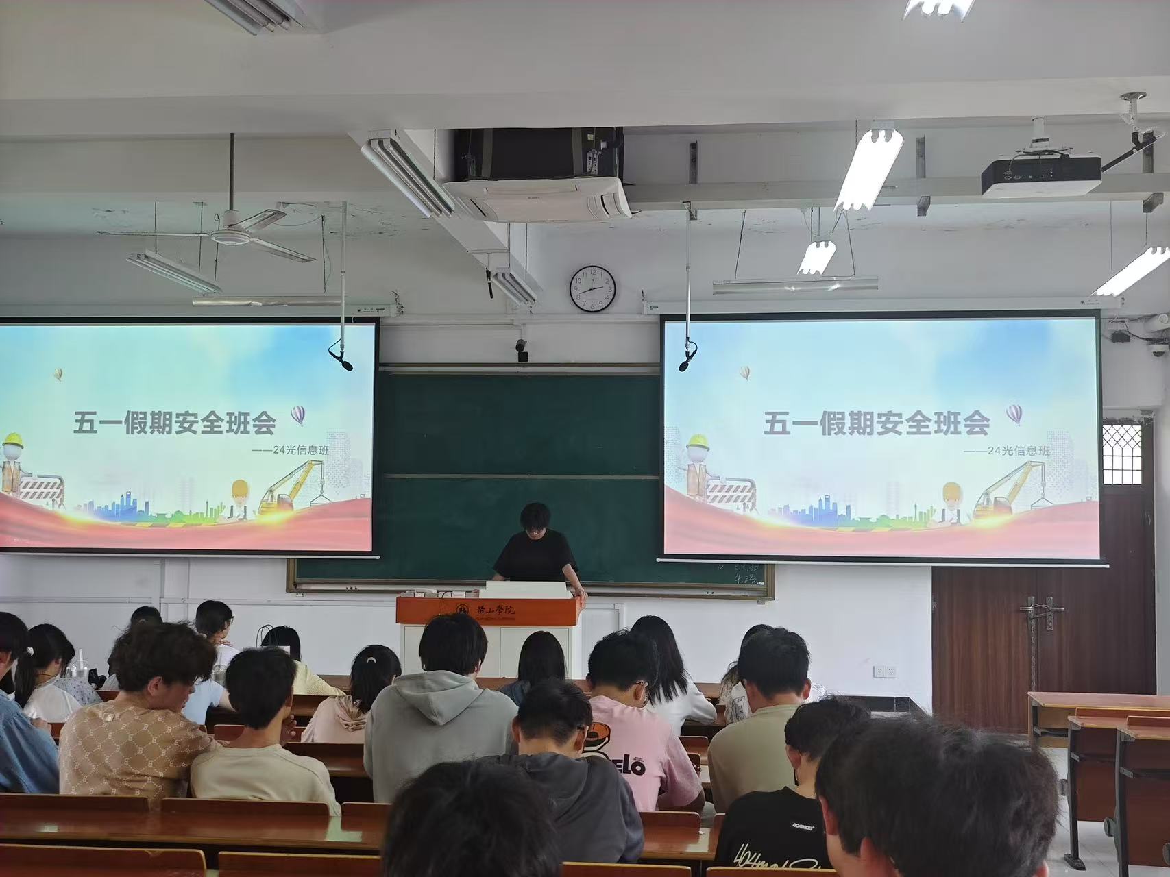 4月25日,24光电信息班积极响应yl23411集团“五一”假期学生管理工作,专门召开主题班会。