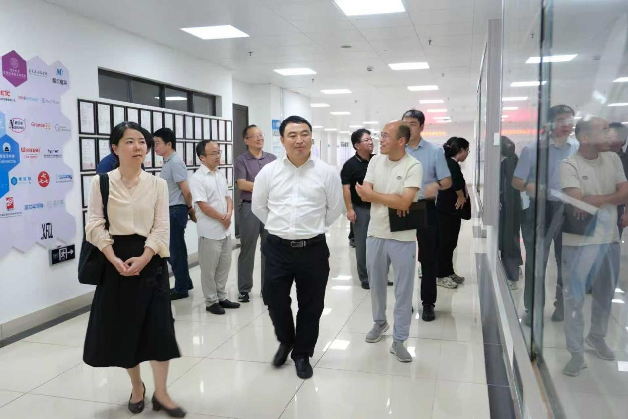 座谈会后,陈龙胜一行参观了我校安徽省功率集成电路工程研究中心,中心负责人陈珍海教授就中心的建设历程、核心设备与学生培养成果进行了深入细致的讲解。