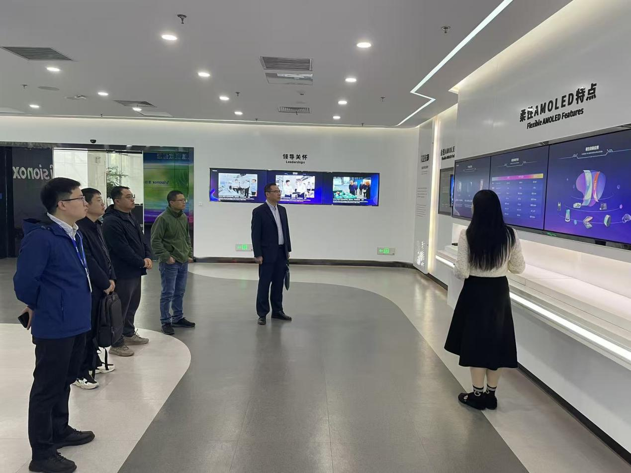 31日上午,调研组赴合肥维信诺科技有限公司调研。作为OLED显示技术头部企业,维信诺近年持续加大研发投入,对掌握新型显示驱动技术、集成电路设计、智能终端开发的高端复合型人才需求迫切。调研组首先参观企业产品展厅,详细了解从技术研发到产业化落地的全链条发展历程,重点观摩柔性AMOLED技术的场景化应用成果;随后的座谈会上,双方围绕光电产业人才需求现状、实习实践基地共建、产学研合作模式等展开探讨。