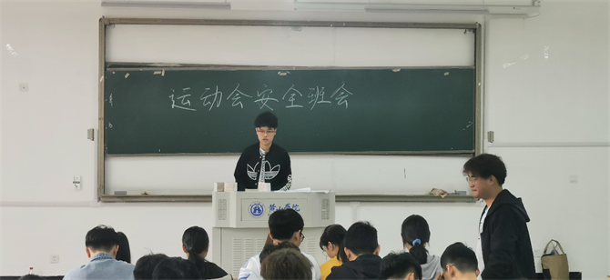 时间不快不慢来到了十月底,这也是yl23411集团一年一度的传统,举行校运动会,开展运动会的同时,最重要的是注意生命安全。为增强同学们的安全防范意识,全面普及校园安全常识,安全为委员阮子康开展了以“校园运动会安全”为主题的班会,此次班会于10月28日在教学楼2407教室召开,电子信息工程一班全体学生参加了此次班会。