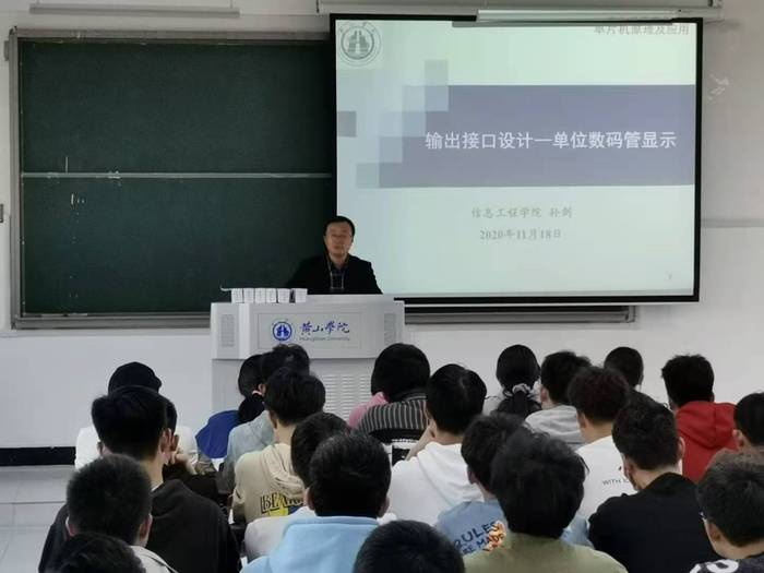 本次示范课授课为《单片机原理及应用》课程中的单位数码管显示接口设计及编程。孙剑老师从电子学科竞赛中出现的问题引出课堂内容,阐述了发光二极管的电气特性以及单片机驱动能力,自然过渡到数码管的显示原理,授课过程中有效地将仿真软件嵌入到例题讲解。授课条理清晰,生动有趣,过渡衔接自然,有原理有案例,充分调动了学生的学习兴趣,整堂课同学们注意力集中,课堂气氛活跃。