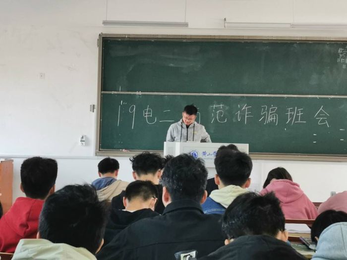 网络诈骗案件越来越多,作案手段花样翻新,技术含量越来越高。为了提高同学们的防范意识,19电子二班召开防范网络电信诈骗主题班会。