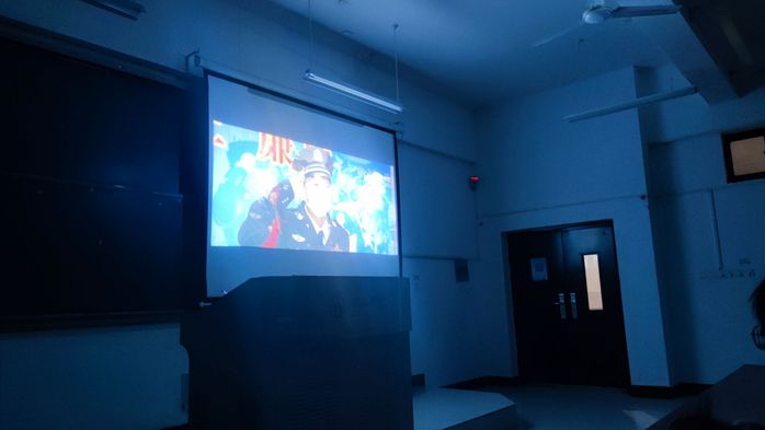 晚上七点,在同学期待的眼神中,电影准时开始。观影过程中,教室内安静庄严,同学们全身心的投入于电影故事的进行中。随着电影剧情的跌宕起伏,同学们从开心大笑,到感动流泪,再到最后的肃然起敬。电影内容深刻,以一种生动的方式为我们展示了无数平凡人挺身而出,逆流直上,舍小家保大家的英雄气魄。英雄的故事令人动容倾佩。影片结束后,同学们心中热血难凉,纷纷自发的向英雄们敬礼!