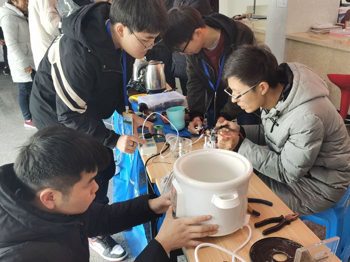 在歙县团县委的安排下,队员们带着所需要的物品和元器件来到了歙县北关社区居民委员会。热情的居民们陆续的送来他们损坏的物品,队员们认真的登记,逐个维修,送修的物品包括电磁炉、电吹风、小空调等。队员们都本着为人民服务的态度认真工作,在一天的活动中,共修好了二十余件物品,得到了当地居民极大地肯定和赞扬。