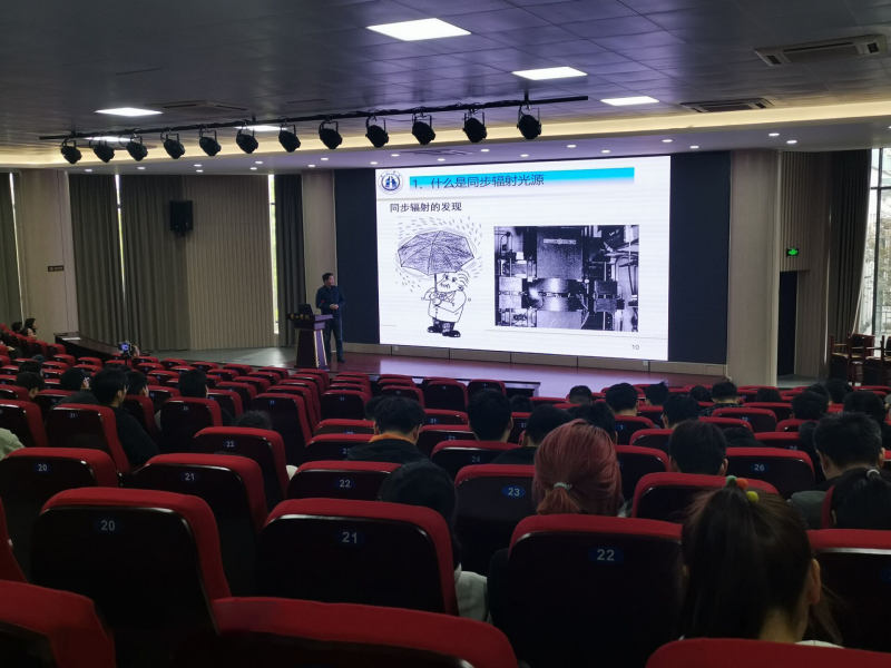 报告会上,占林松用通俗易懂的讲解方式,以同步辐射光源的基本概念为切入点,结合光源在国家建设和发展中的作用,以上海同步辐射光源(SSRF)为例,阐述了同步辐射光源横向振荡的危害及抑制。报告会生动有趣,拓宽了同学们的专业领域视野,让大家近距离体会到了科级的魅力。