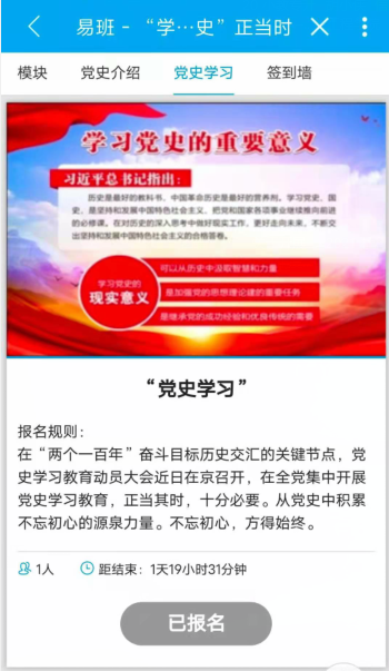易班轻应用成功搭建,是学习教育中汲取的经验智慧转化为实际能力的具体表现,为同学们学习党史提供了新的渠道,也是突出丰富载体,提升党史教学教育吸引力的具体表现。
