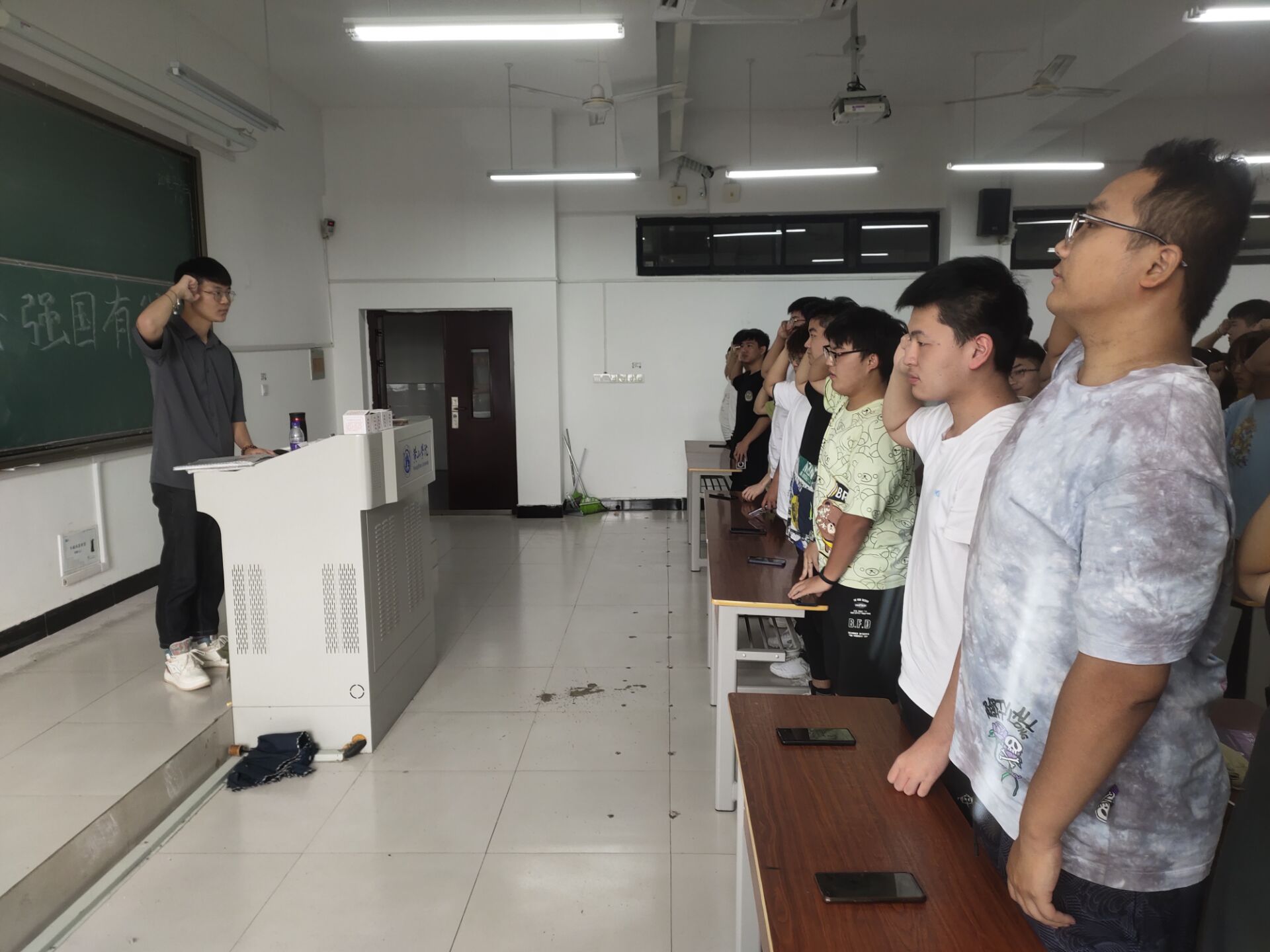 本次活动以线下的形式进行,由团支书李颖宣布誓词内容,全体起立,紧握右拳“请党放心,强国有我……”。大家纷纷表示一定会牢记誓词,刻苦学习,努力奋斗,早日成为实现国家富强的建设者。