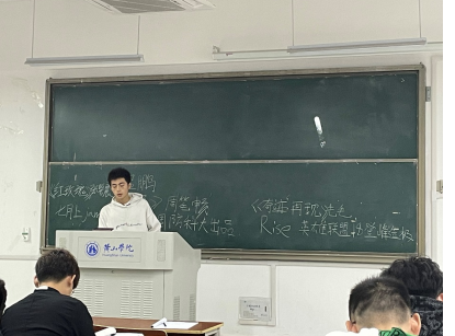 会议中首先以提议的方式选出了“红玫瑰”、“七月上”、“笔记”、“奇迹再现”、“Rise”、“耿续”、等6首歌。而后,采用投票的方式确定班歌。经一轮投票最终“奇迹再现”歌曲以15票,斩得头名,确定为我班班歌。