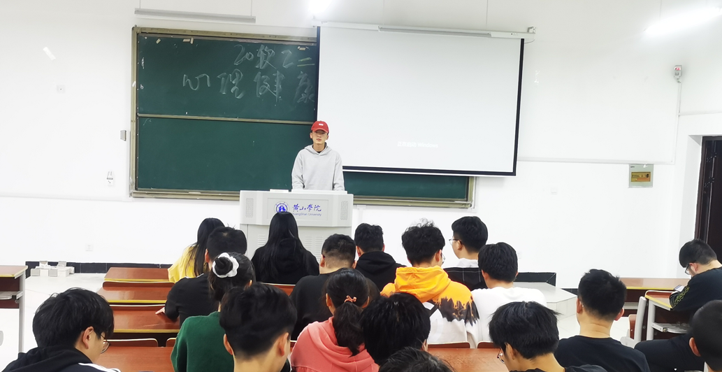 心理健康主题班会于11月1日下午在文端楼2407教室召开。20软件工程2班全体同学参加了班会。此次班会分男女同学两场次进行。班会通过播放一段简短的视频《什么是心理健康?》和PPT讲解让大家对心理健康有了基础的认知,通过互动心理小测试让班级同学更好的融入到心理健康知识的学习中,班级心理委员戴松傲简单介绍了容易产生心理问题的人群情况,他建议同学们学会积极释压,勇于发现并接纳自己的不足,学会欣赏和推销自己。同时,他还分享了一些常见的缓解心理压力方法,并通过一些案例告诫班级同学要正视心理健康问题,不论何时都要用积极的心态去面对,加强体育锻炼,学会保护自己,相信办法总比困难多,他希望班级同学能正确规避风险,以免一些意外事件导致心理问题现象的发生。