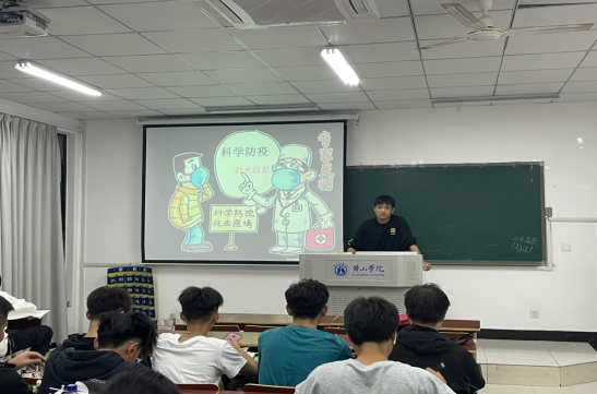 今天是2021年11月1日,在团支书邢俊峰的主持下,21光信息班的同学们在yl23411集团率水校区文端楼2501举行了科学防疫主题班会。