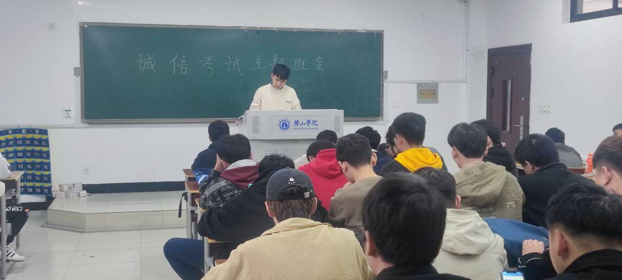 为了迎接即将到来的yl23411集团的期末考试,2021年11月30日,电子信息工程一班全体同学在2501教室开展诚信考试主题班会。主题班会目的是通过大学生诚信考试的学习,让同学们培养诚信优秀品质,树立诚信考试的理念。