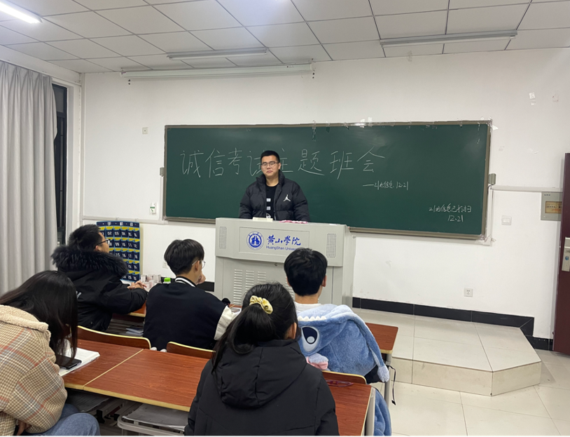 今天是2021年12月21日,21光信息班在班长唐松的带领下于文端楼2501教室开展了诚信考试的主题班会。