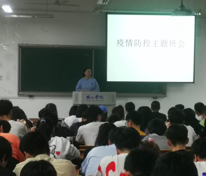 班会开始,辅导员向我们普及了现下疫情形势,说明了落实疫情防控工作的重要性,提醒同学们一定要重视,且保持警惕。柳老师向同学提了如下几点要求:1:、非必要不出校、非必要不离黄、非必要不离皖。2、班委配合老师掌握学生健康状况及行程等动态信息,做到底数清、情况明。3、学校将会加强寝室宿舍安全检查力度,所有同学应当管理好自己的寝室卫生,未经审批私自外宿的学生限期搬回,否则会给予相应惩罚。4、严格请、销假制度,不得私自外出,超出请假时间逾期返校,违反防疫规定者,从重处理。