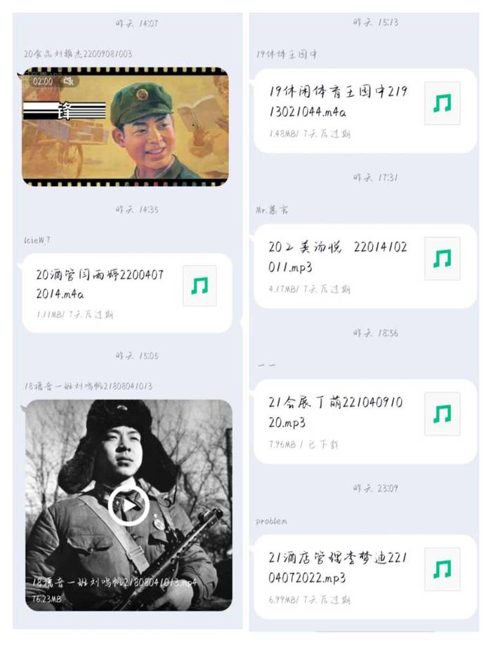 活动开始后同学们就陆续发送自己的作品,有的是以纯音频形式,有的是借助图文来配合自己的录音,也有的以录制短视频视的形式表达自己对雷锋精神的歌颂。同学们真情流露,诉说着自己是如何理解雷锋同志的崇高精神,又是如何打算以雷锋同志为榜样来约束自己。