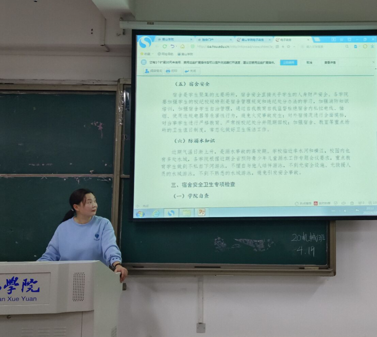 春夏交际是传染病高发期,极易引发流感,同时气温逐渐升高,也是溺水事故的高发期,寝室安全也一直是学校专注的重点。为了进一步保障班级同学的人身安全,19软件工程专业,20电子2班全体同学于2022年4月19日在1205教室举行夏季安全主题班会。