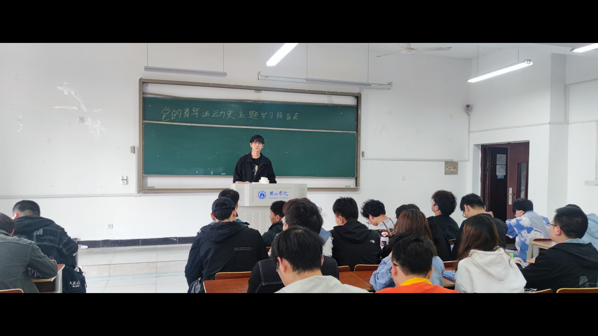 此次活动以线下的形式进行,由团支书李颖主持。会议分别从新民主主义革命时期青年运动史和社会主义建设时期青年运动史两个方面组织同学们进行学习,主持人引导同学们重温了百年前五四运动期间青年学子为救亡图存而不屈不挠的奋斗历程,并表示无论过去、现在还是未来,中国青年始终是实现中华民族伟大复兴的先锋力量。会议的最后还重温了入团誓词,观看了“党的百年奋斗史”以及“牢记百年团史,展青春之样貌”等视频。