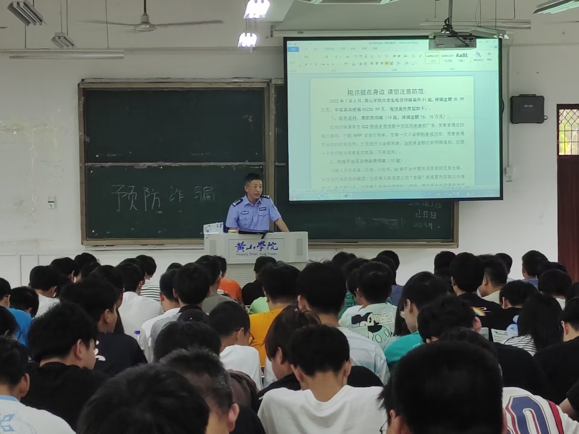 近日,我校诈骗类案件频发,本校学生深受其害,为进一步提高同学们的防诈骗意识,增强同学们的财产保护意识和能力,2022年9月15日下午在1205教室召开防诈骗主题班会。本次班会邀请了屯溪区民警为同学们进行专题宣传。