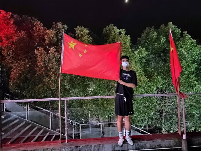 同学们寻找身边的国旗,用单拍、团体组合、集体照等方式表达着对祖国的感恩之情,他们用照片的形式,用切实的行动诉说着对祖国的热爱。