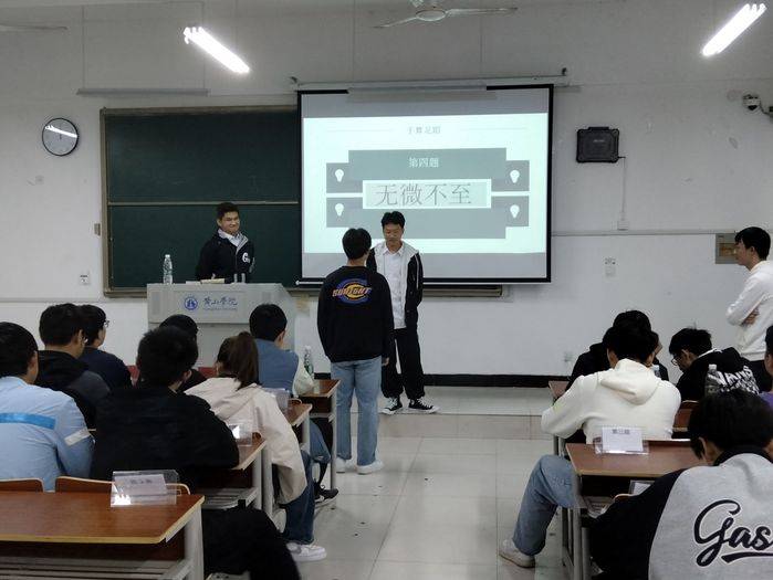 本次比赛共设五轮环节:风采展示、百科荟萃、手舞足蹈、争分夺秒、一题定乾坤。每轮淘汰分数低的队伍,直至选出最后胜出队伍。竞赛内容丰富新颖,涉及到各个学科和生活常识,还包括一些时政热点、趣味知识和影视音乐等。比赛分为必答题和抢答题,每一个环节,队员们都积极参与、自信满满,展示了深厚的文化功底。比赛现场气氛高涨,同学们充满热情,经过激烈的角逐,22电子一班代表队赢得比赛冠军。