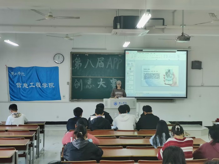 同学们积极参与活动,通过线上提交作品,经过筛选最终12份优秀作品进入决赛。决赛现场,每位选手在规定的时间内,以PPT的形式从现状分析、产品概念、适用人群、技术特点、功能实现几个方面进行展示,此次参赛的作品创意独特,理念新颖,主题健康。最终,21级生物科学郑好的《遇色》获得一等奖,21广编一班陈夏暑的《亲启,西海路39号》和20中法一班姜慧慧的《e康通》获得二等奖,22酒店管理孙碧莹的《目标killer》、21软件工程刘皖东的《健康乐跑》、21会展经济与管理洪吴巧的《JN集念》、21会展经济与管理王月的《3D穿搭app介绍》获得三等奖。