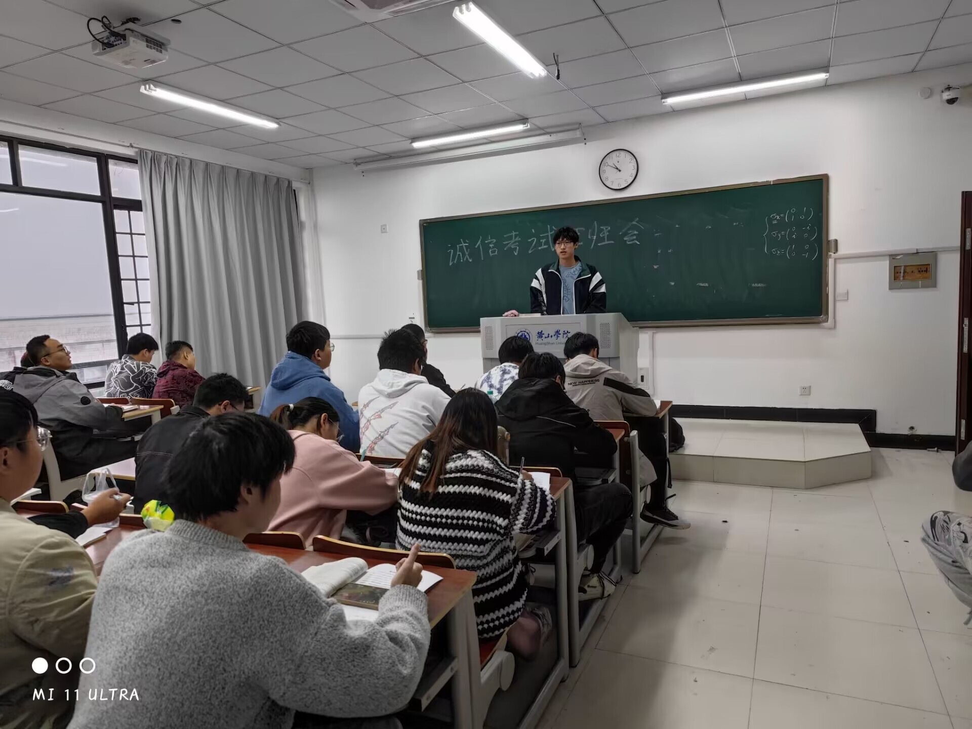 期末将近,各种考试即将来临。为了培养同学们树立诚信考试,文明做人的观念,以积极向上的态度迎接即将到来的期末考试。11月28日上午10时许,20光信息班于文端2501教室举办了“诚信考试”的主题班会,全班共50余名同学参与了此次班会。