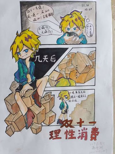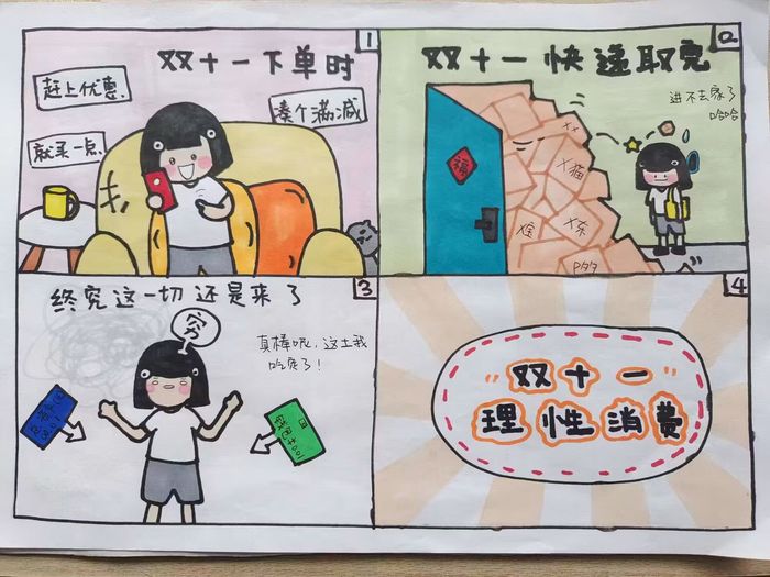 为呼吁广大同学树立正确的消费观念,用理性的眼光看待购物,规避购物陷阱和消费风险,11月10日,永利yl23411集团举办了“双十一 理性消费”手绘漫画大赛活动。