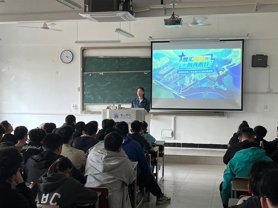 招聘会上晶澳太阳能科技股份有限公司以PPT宣讲形式生动形象地展现了企业发展历程,同时讲述了企业对毕业生的需求情况及相关待遇。同时我院与企业也强化了校企衔接、深化校企合作,拓宽与企业的合作空间,搭建合作平台,实现优势互补、资源共享、合作共赢,全面提升人才培养质量,促进毕业生更充分更高质量就业。