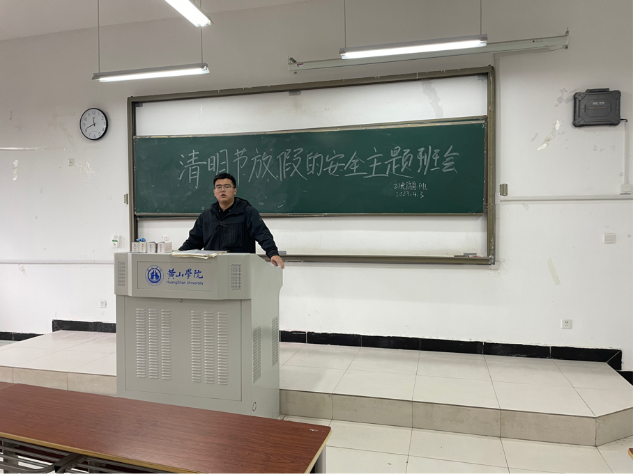 今天是2023年4月3日,21光信息班在2410教室进行了清明节放假安全主题班会,由班长唐松组织这次班会。