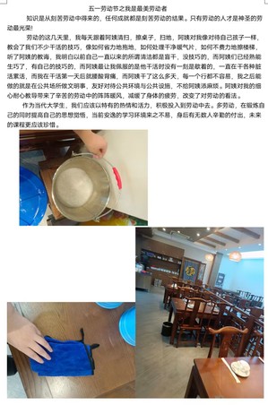 此活动的初衷在于鼓励同学们积极投身到劳动中去。参加此次活动的同学们自行书写一篇劳动后的感悟小作文,同时附上自己劳动时候的照片。通过写作更能让大家体会到劳动时的心情与感悟,更加深刻体会劳动精神的含义。