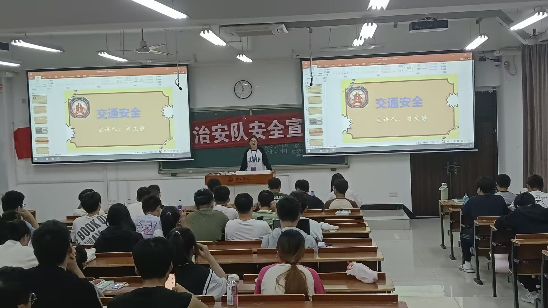 为进一步提高同学们的安全意识和自我保护意识,切实做好学生安全教育工作。11月5日晚7点,保卫处学生治安队在文端楼1405给23电子1、2班开展了“安全宣传活动”,旨在通过本次活动,让每一位同学都能深刻理解到安全的重要性,从而在日常生活中自觉遵守各项安全规定,共同维护我们的生命财产安全。