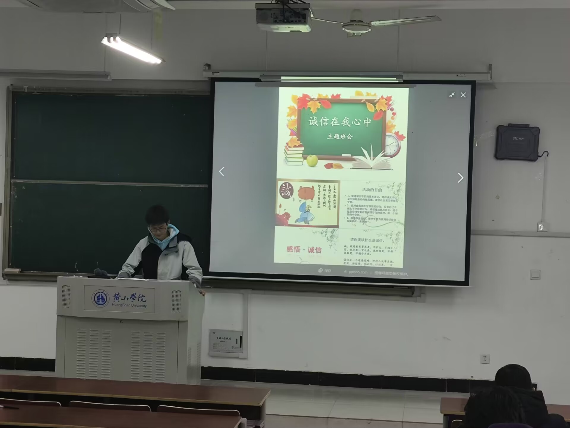 首先,班会上向大家阐释了诚信的内涵,即待人处事真诚、老实、讲信誉。言必信,行必果,一诺千金。接着,班长通过一系列的案例从个人、国家、企业三个层面介绍了诚信的作用。然后,讲述了当前大学的诚信现状,有学术诚信、考试诚信、助贷诚信等等,并呼吁同学们提高自身修养,养成诚信品质。最后,向大家介绍了大学生诚信守则以及讲求诚信的重要性,强调同学们在各项国考、期末专业性考试等各类考试中,诚信考试,拒绝作“枪手”,将诚信考试贯穿到整个大学生活中去。