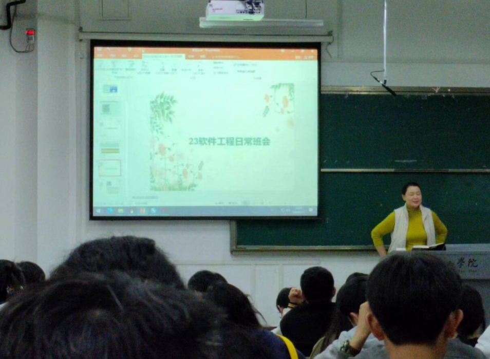 4月11日,23级软件工程班在文端楼开展班级日常教育主题班会暨学风促进主题教育活动。会议由辅导员柳老师主持。