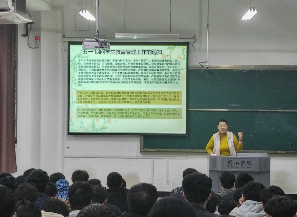 五一劳动节即将到来,同学们即将迎来一段宝贵的休息时间。值此欢乐时光,同学们的安全问题不容忽视。为了确保学生们度过一个愉快而安全的假期,21、23软件工程专业,21光信息专业联合开展了五一假期安全主题班会,班会由辅导员柳丽平老师主持。