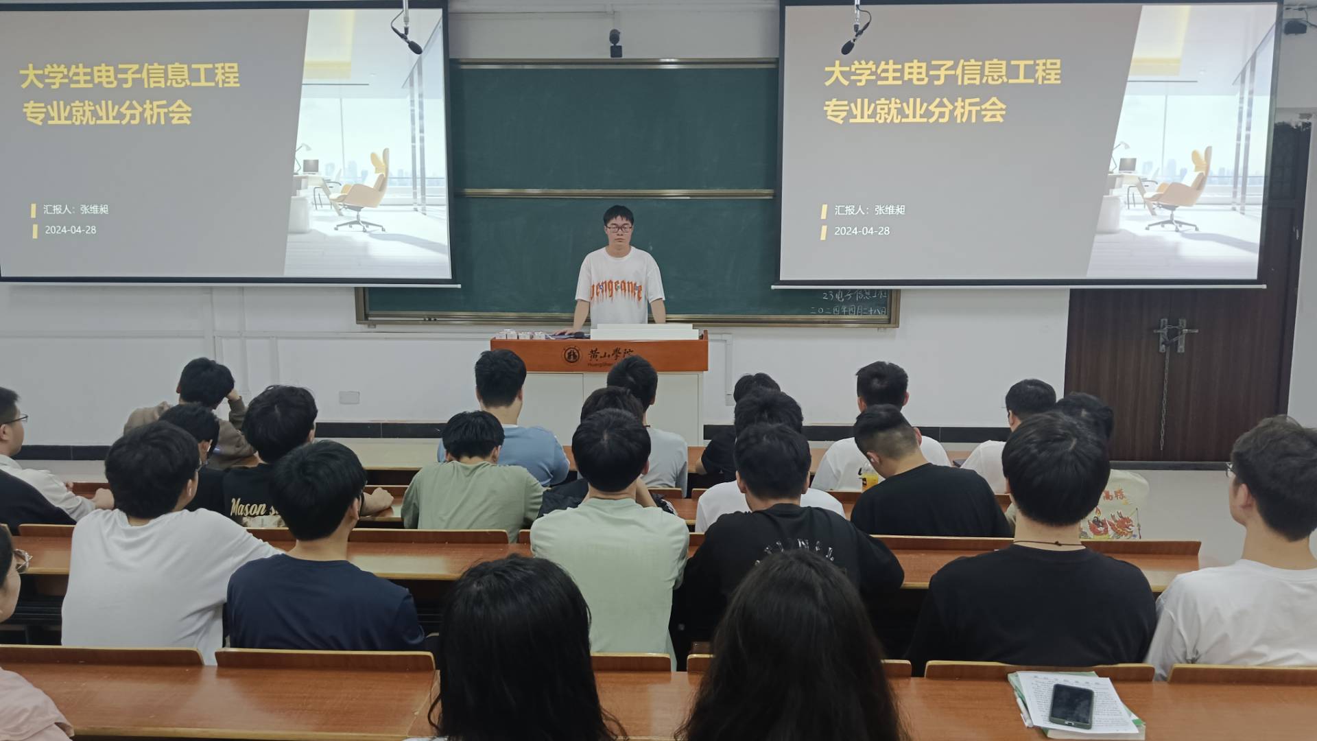 为帮助23电子信息工程专业学生深入了解行业动态,明确职业发展方向,提升就业竞争力。4月28晚7点,23电子1班在辅导员的组织下于文渊楼1405开展电子信息工程专业就业分析会。