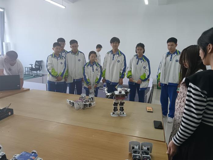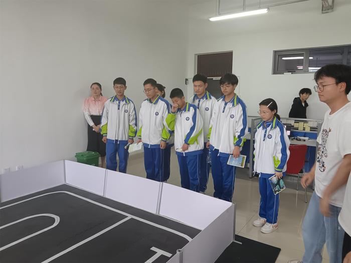 在实验室中,海阳中学的同学们被各种先进的智能车和机器人所震撼。永利yl23411集团创新实验室的师生耐心细致地为他们讲解了实验室的竞赛成果和未来发展方向,让他们对人工智能和机器人领域有了更清晰的认识。