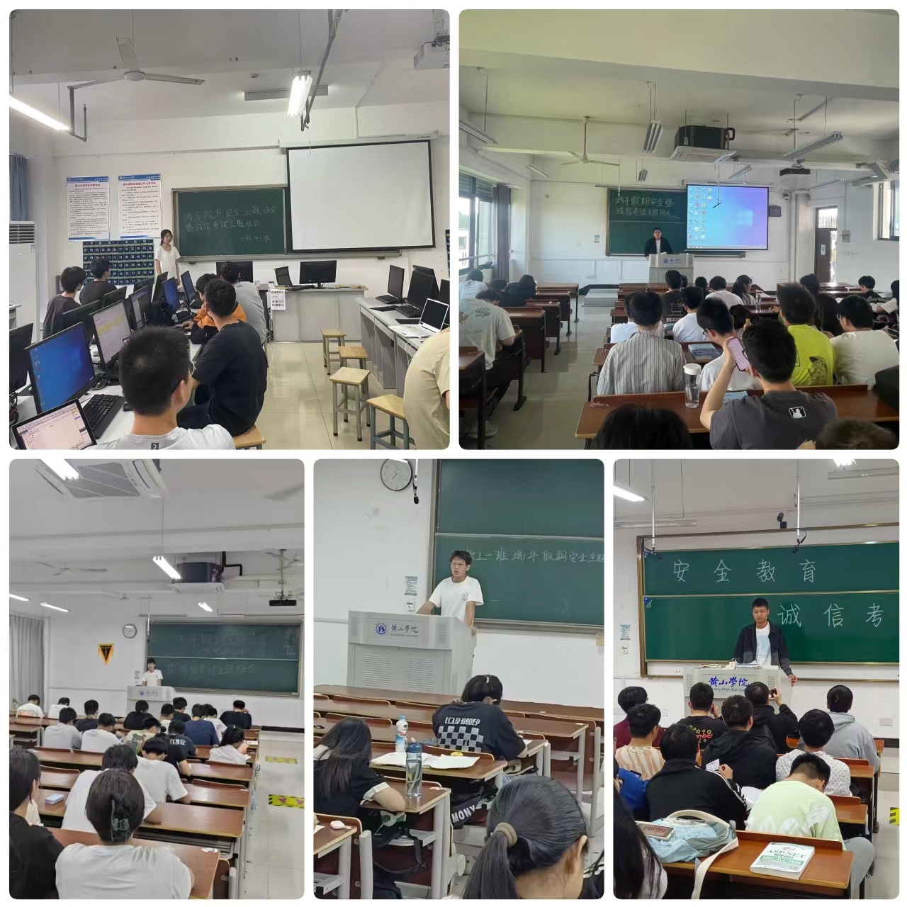 6月3日,由于专业课程安排时间紧张,故分不同时段利用课余时间21光信息、21软件工程、23软件工程专业学生在班干的带领下,开展了端午假期安全主题班会暨考试诚信主题班会。