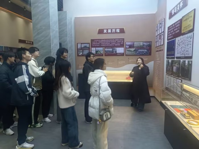 校史馆参观这一实践课上,同学们在讲解员的带领下参观了校史馆的各个展区。从创校初期到如今的辉煌成就,每一幅图片、每一件展品都生动地展现了学校的发展脉络。通过观看历史文献、珍贵照片和实物展品,同学们对学校的发展历程有了更深入的了解。