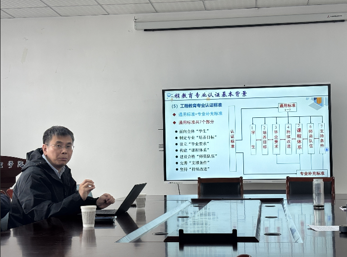 随后,沈川以“工程教育认证下的专业和课程建设”为题,围绕专业设置、课程体系、教学实施与课程评价等方面展开深入讲解。他以安徽大学电子信息工程专业为例,具体解析了培养方案制定、毕业要求达成、课程大纲编写及期末课程材料整理等环节,为我院相关工作提供了具有实操价值的经验参考。