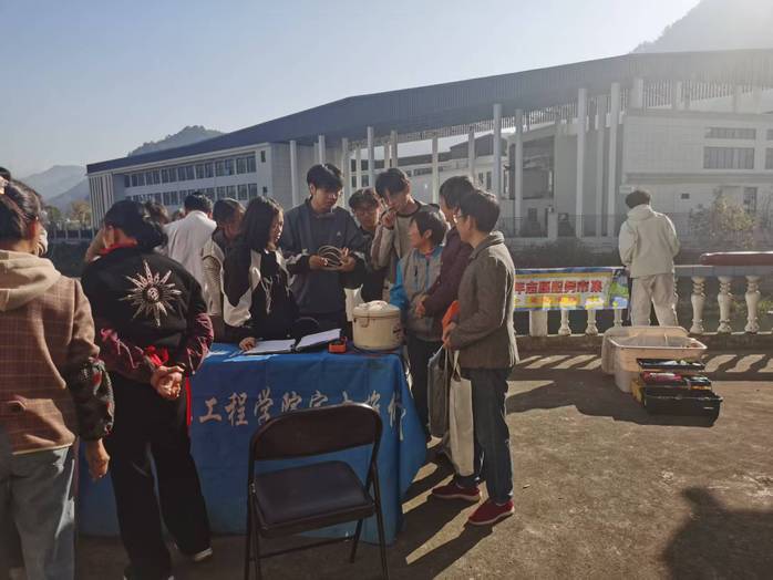 本次活动以“服务下乡,科技便民”为核心。活动当日,维修队的同学们一早便在镇上的活动广场搭起了工作台。闻讯赶来的村民们纷纷带来了家中出现故障的电风扇、电水壶、电饭煲、电磁炉等小家电。队员们热情接待,耐心询问故障现象,随后便熟练地运用专业知识和自备的维修工具,细致地进行检测、诊断与维修。现场气氛热烈而有序,队员们分工明确,有的负责登记信息,有的负责故障排查,有的负责元件更换。伴随着一把把电扇重新转动,一个个电热水壶恢复功能,村民们脸上露出了满意的笑容,并对同学们扎实的专业技能和无私奉献的精神赞不绝口。