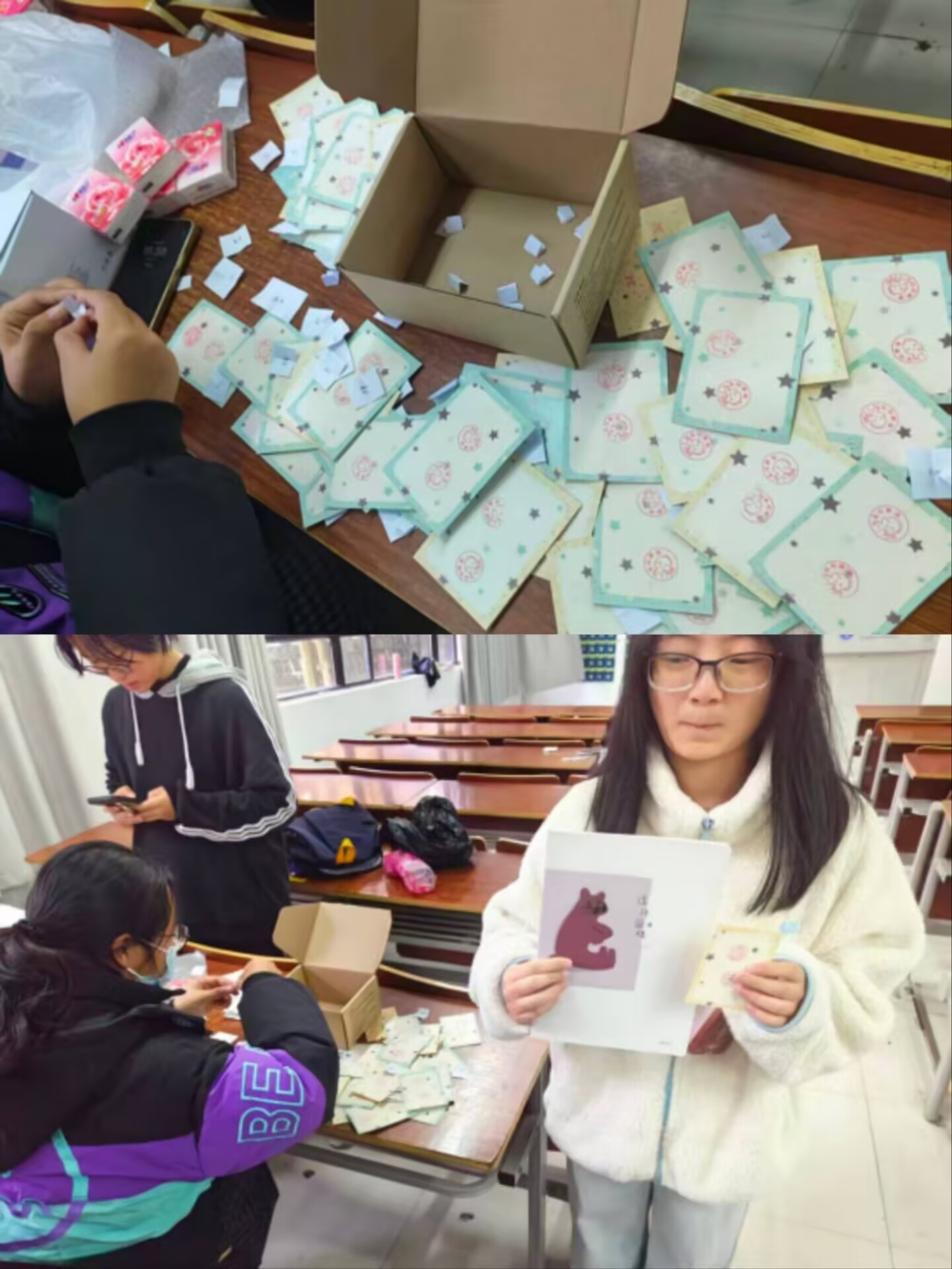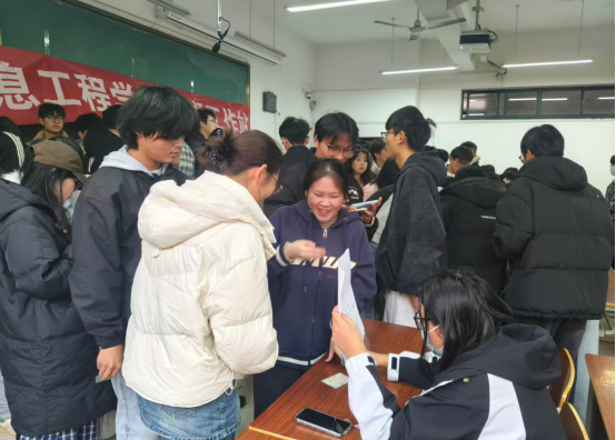 活动现场,同学们先前往文端楼2206教室领取闯关卡片,随后在文端楼2207教室开启“闯关集章”之旅:在“红色人物猜猜乐”环节,大家根据历史人物剪影图片“解锁”先辈名字;在“红韵成语接龙”环节,用带有“红”“心”等关键词的成语传递红色温度;在“红色知识问答”环节,围绕党史知识、红色故事展开“脑力比拼”。集齐三枚印章的同学回到2206教室参与抽奖,马克杯、小猫挂件、笔记本等实用奖品让大家收获满满;即使闯关失败,大家也能重新排队再次挑战,现场充满了欢声笑语与积极向上的氛围。活动结束后,同学们还通过易班平台发布#薪火传红,青春筑梦#话题心得,并完成在线作业、扫码签到,让红色感悟延续到线上分享。