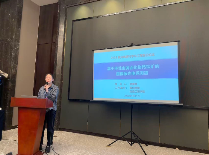 顾雅蓉博士在会上作了题为《基于手性金属卤化物钙钛矿的圆偏振光电探测器》的研究报告。该工作聚焦于手性钙钛矿材料在圆偏振光探测中的独特优势与应用前景,完整呈现了从材料设计、机理解析到器件优化的系统性创新,并展示了其在信息加密中的应用演示。该研究为开发新一代集成化先进光电器件与信息安全技术提供了重要思路。