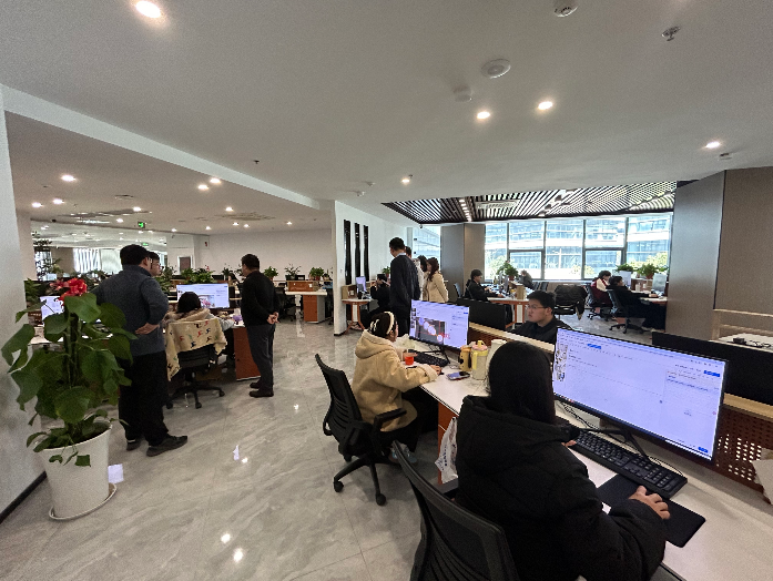 期间,张爱民一行参观了员工与实习生开展的具身智能数据标注工作,深入了解了项目标注目标、物体轨迹的标注流程,涵盖轨迹标注时的对齐问题、注意事项以及难点等内容,还与研发团队就预训练模型的预标注情况展开了交流。