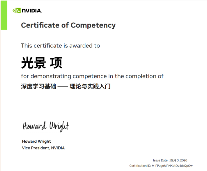 此次参与NVIDIA深度学习培训并全员获证,是我院深化人工智能专业人才培养、推动学生对接行业前沿技术的重要实践。下一步,我院将继续聚焦学科专业发展与学生实践能力提升,积极搭建更多优质的行业学习、培训与认证平台,引导学生紧跟人工智能技术发展趋势,不断夯实专业基础、提升技术应用能力,助力学子在人工智能领域的学习与职业发展中走深走实,培养更多符合行业需求的高素质应用型人才。