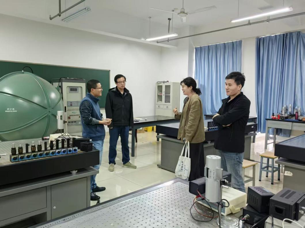 在光电信息科学与工程专业负责人胡新广老师的陪同下,鲁才宝总经理一行先后参观了物理光学、工程光学等多个专业实验室,详细了解了实验室的设备配置、检测条件及人才培养情况。双方对相关光学产品开发的技术细节进行了初步探讨,同意就产品方案细节进行进一步交流,双方表达了合作意向。