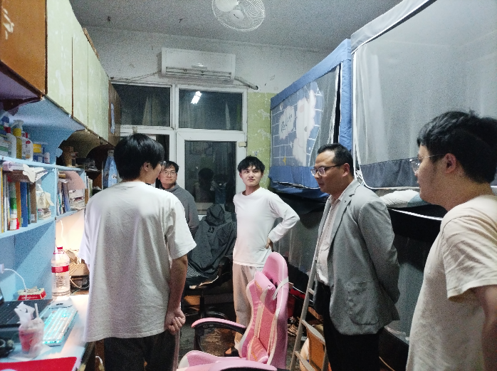 走访过程中,张爱民一行先后走进多个毕业生寝室,与同学们亲切交谈,氛围温馨。每到一间寝室,领导们都细致询问同学们的毕业准备情况,关切了解大家近况,耐心倾听毕业生在毕业设计收尾、离校手续办理、未来职业规划中遇到的困惑与诉求,现场为同学们答疑解惑、出谋划策。