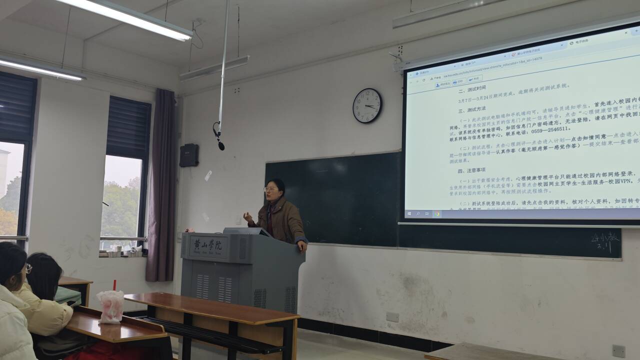 首先,辅导员对最近开展的心理健康测试操作相关情况进行说明,督促同学们尽快完成并真实作答。